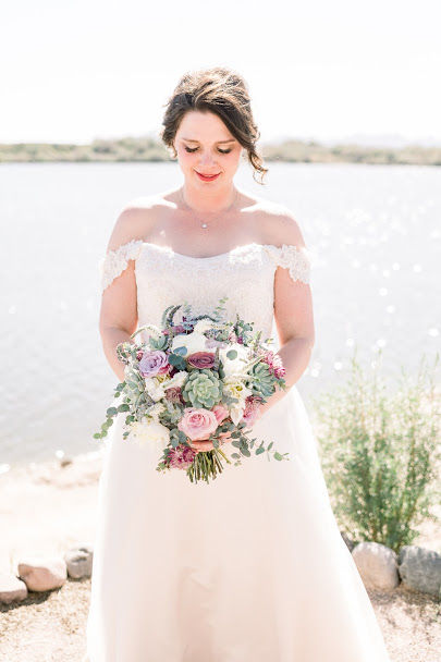 Jamie and Jarod chose a palette of dusty rose, mauve, and sage green. Jaime loved succulents and wanted to have a textured mixture of fresh flowers.